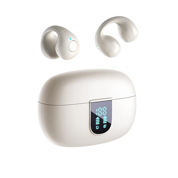 このイヤホンは耳の穴に挿すのではなく、耳の軟骨にひっかけることで、耳の穴をふさがないような設計になっています(イヤーカフ型)。
